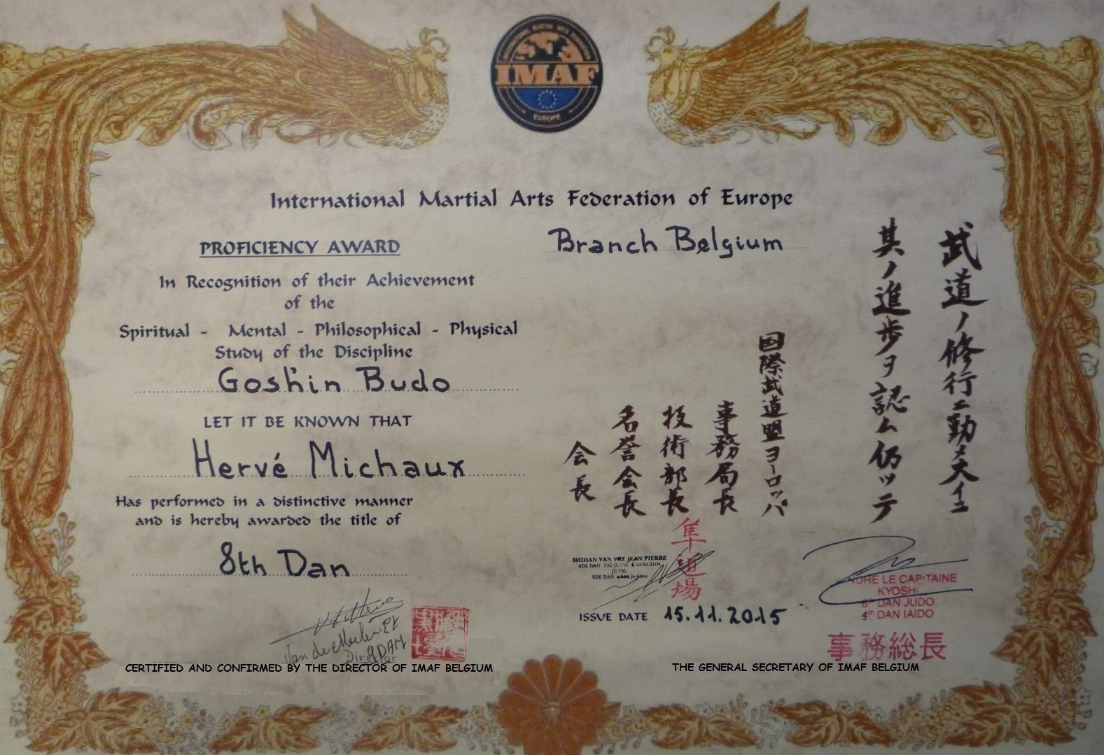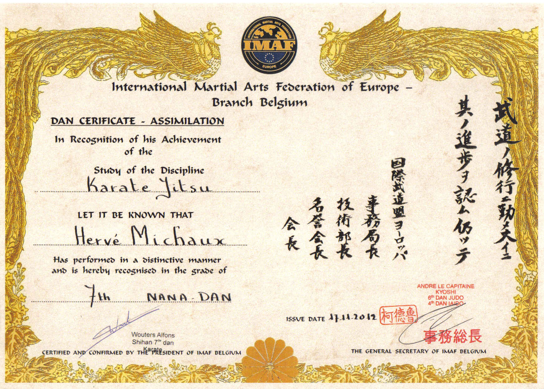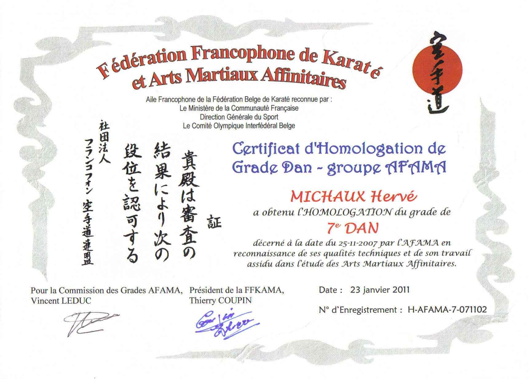 & Certification 7e Dan par l'IMAF
