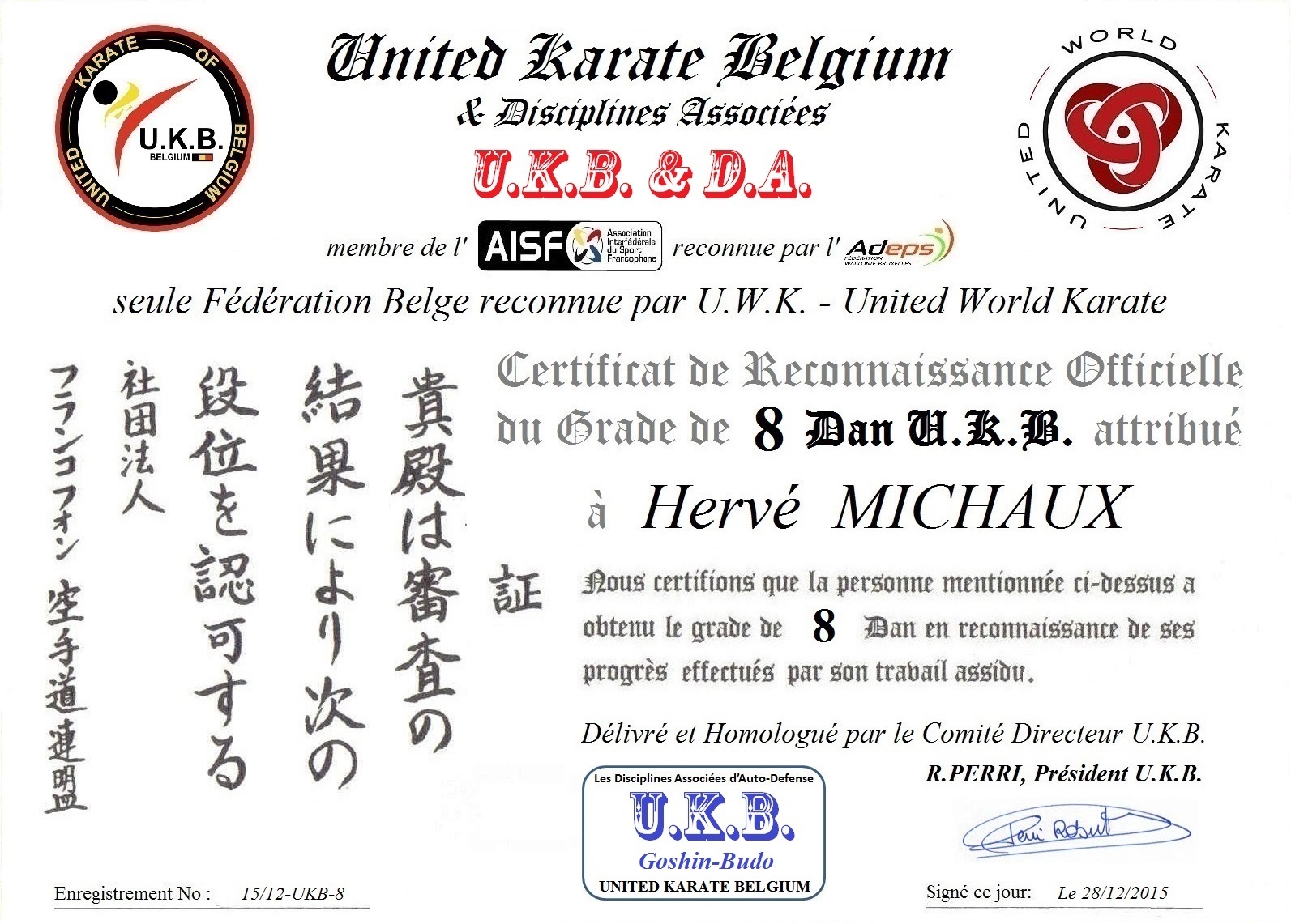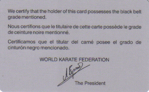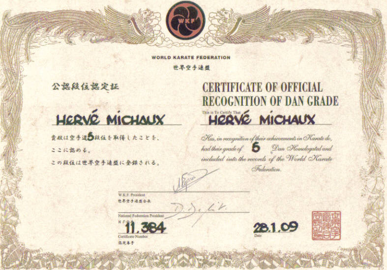 Homologation du 5e Dan par la WKF: