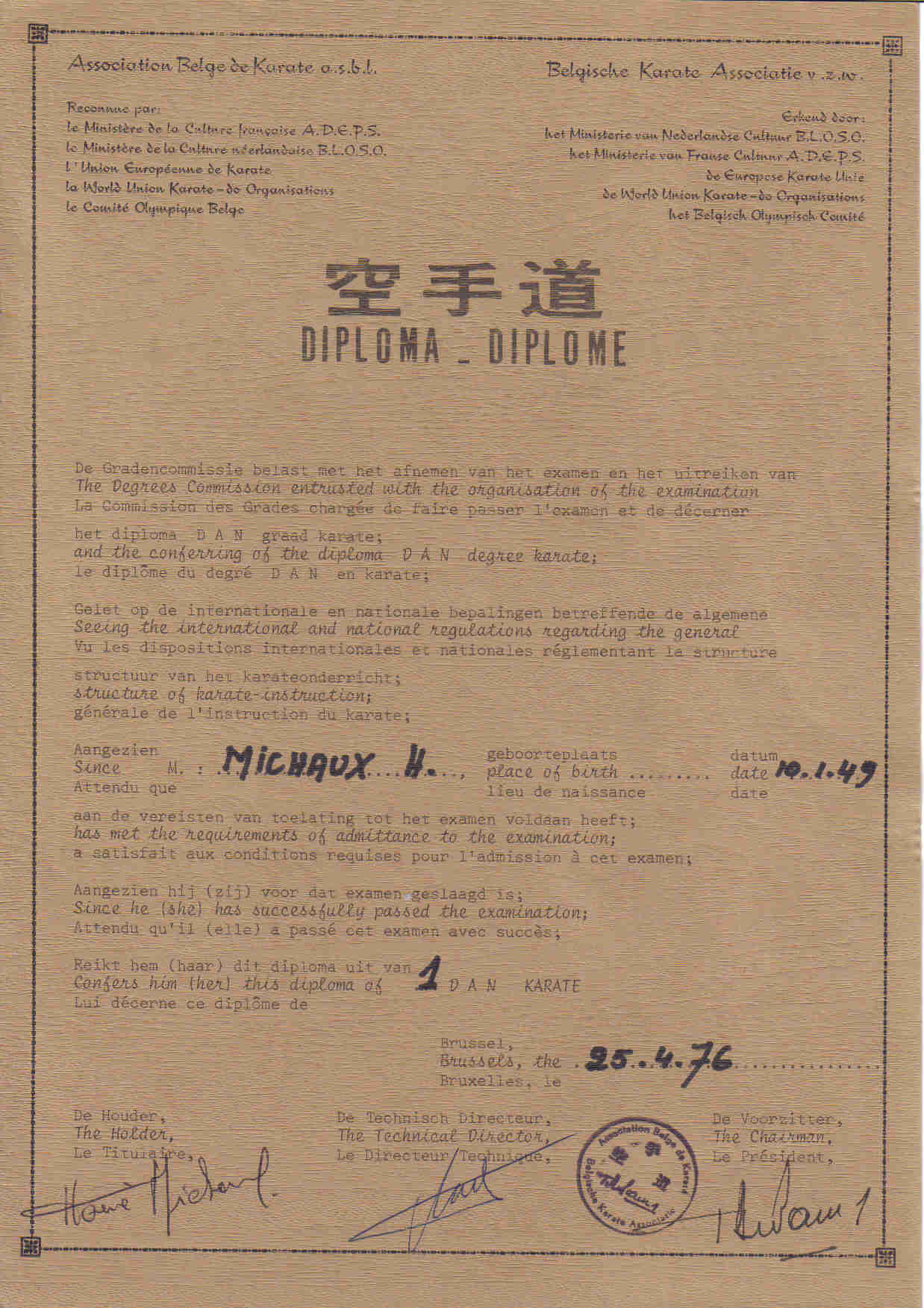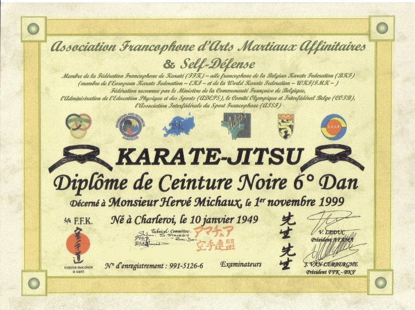 Depuis le 25 avril 1976: 1er Dan & suivants à l'ABK